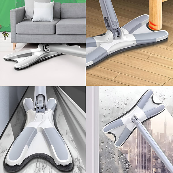 Capul mopului flexibil și pliabil ajunge fără efort în spații înguste—sub mobilier, în spatele toaletelor, în jurul picioarelor mobilierului și în colțuri.
