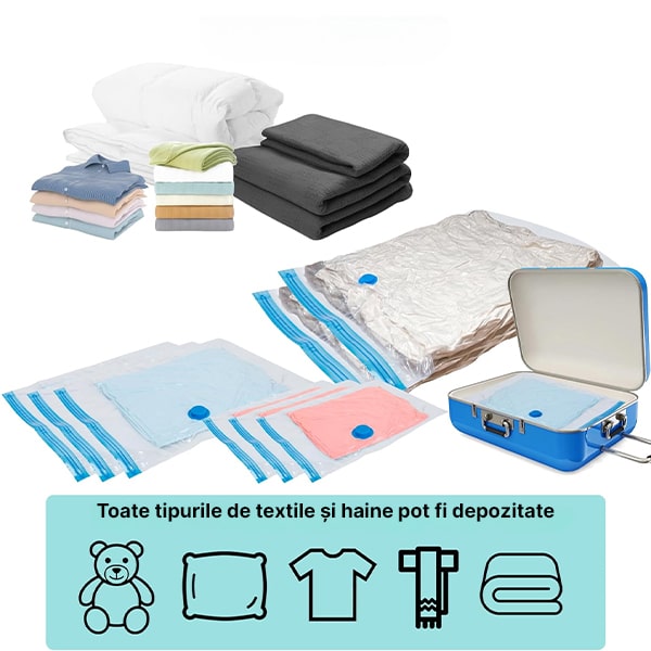 Setul conține 7 saci de depozitare în vid de înaltă calitate, de diferite dimensiuni: