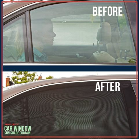 Parasolarele SIDESCREEN sunt fabricate din material de plasă nylon extensibilă de înaltă calitate. Nu ai nevoie de ventuze sau adeziv pentru instalare – așa cum se vede în imagine.