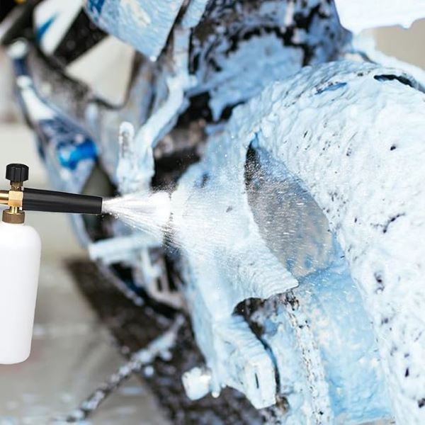 🚗 Schimbați cu ușurință între lancea de spumă și duza pentru aparat de spălat cu presiune.